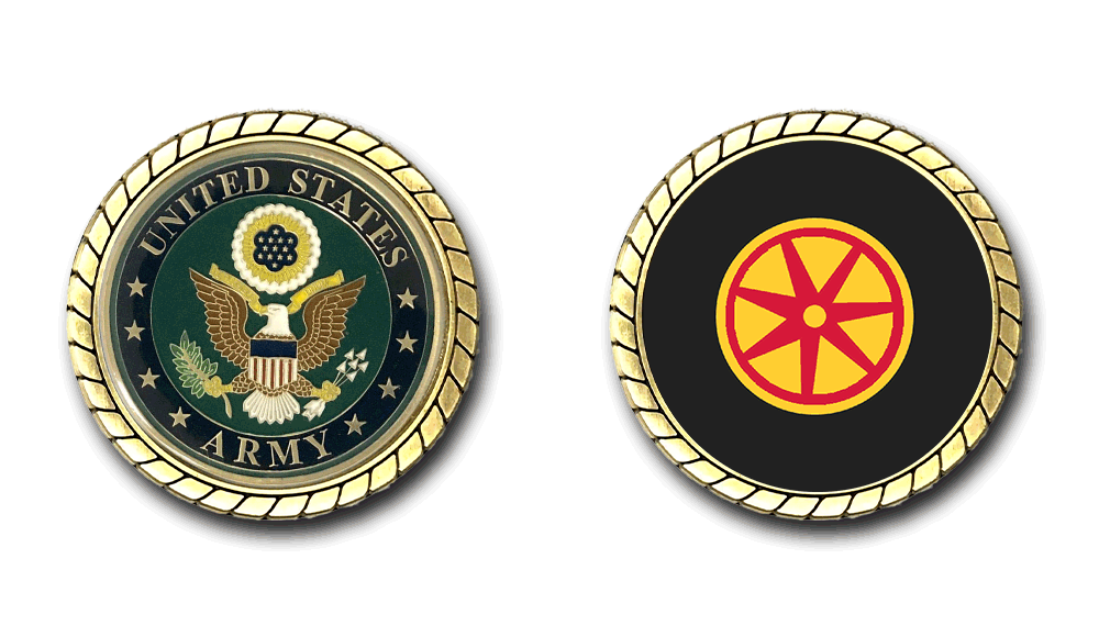 Please enjoy this U.S. Army Officially Licensed Challenge Coin. This coin is approximately 1.75 inches in size, is a 2 sided coin and is of the highest quality.