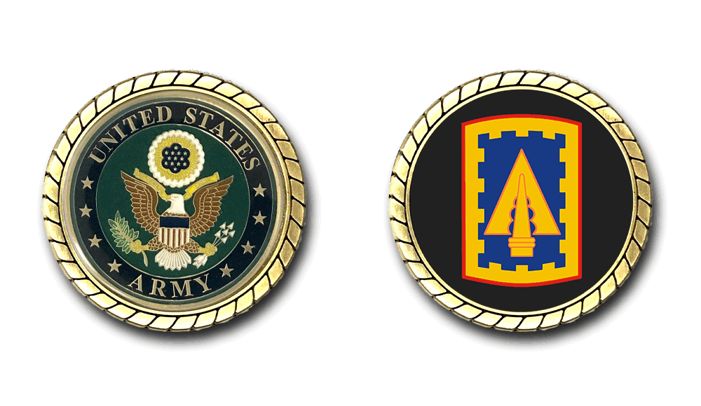Please enjoy this U.S. Army Officially Licensed Challenge Coin. This coin is approximately 1.75 inches in size, is a 2 sided coin and is of the highest quality.