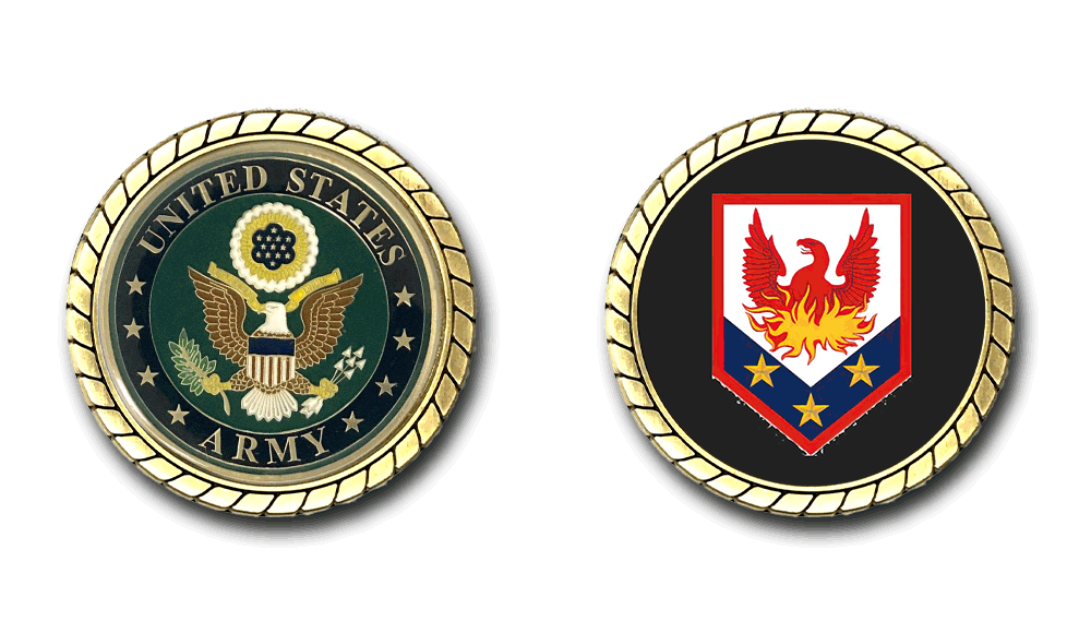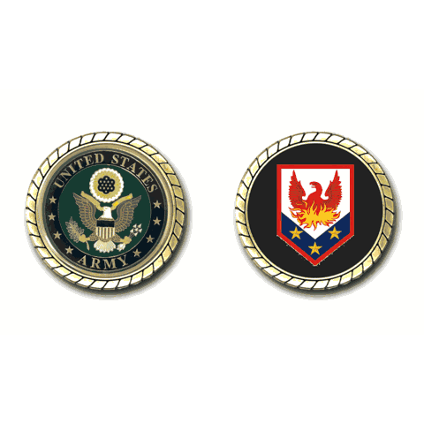 Please enjoy this U.S. Army Officially Licensed Challenge Coin. This coin is approximately 1.75 inches in size, is a 2 sided coin and is of the highest quality.