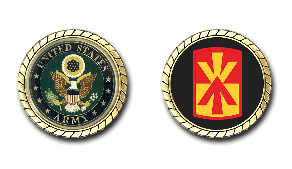 Please enjoy this U.S. Army Officially Licensed Challenge Coin. This coin is approximately 1.75 inches in size, is a 2 sided coin and is of the highest quality.