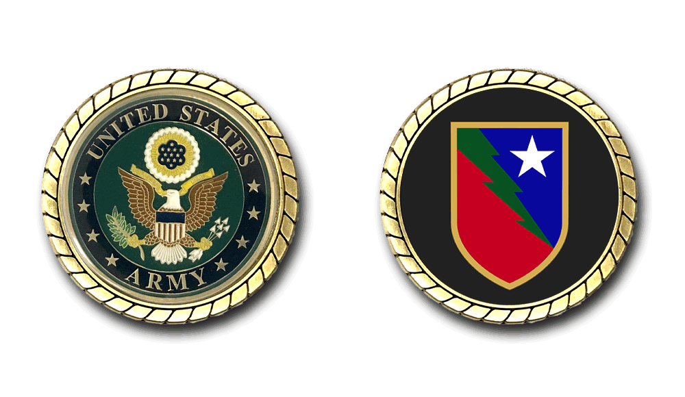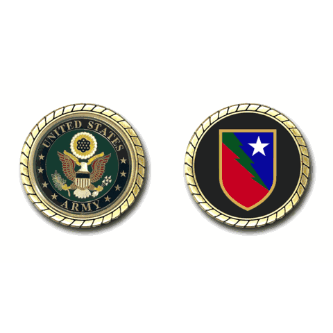 Please enjoy this U.S. Army Officially Licensed Challenge Coin. This coin is approximately 1.75 inches in size, is a 2 sided coin and is of the highest quality.