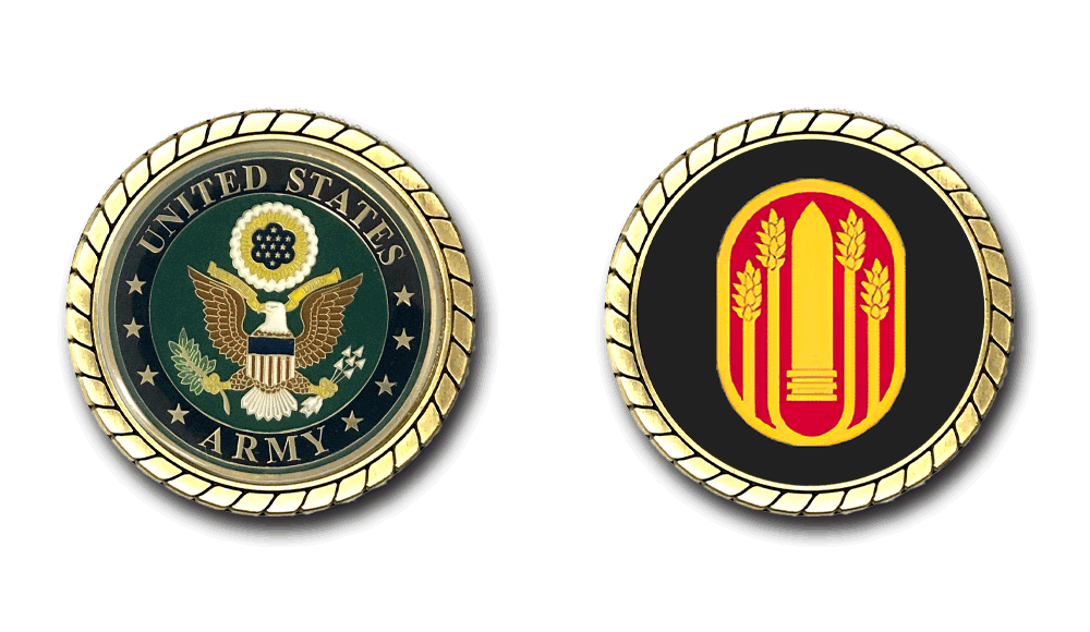 Please enjoy this U.S. Army Officially Licensed Challenge Coin. This coin is approximately 1.75 inches in size, is a 2 sided coin and is of the highest quality.
