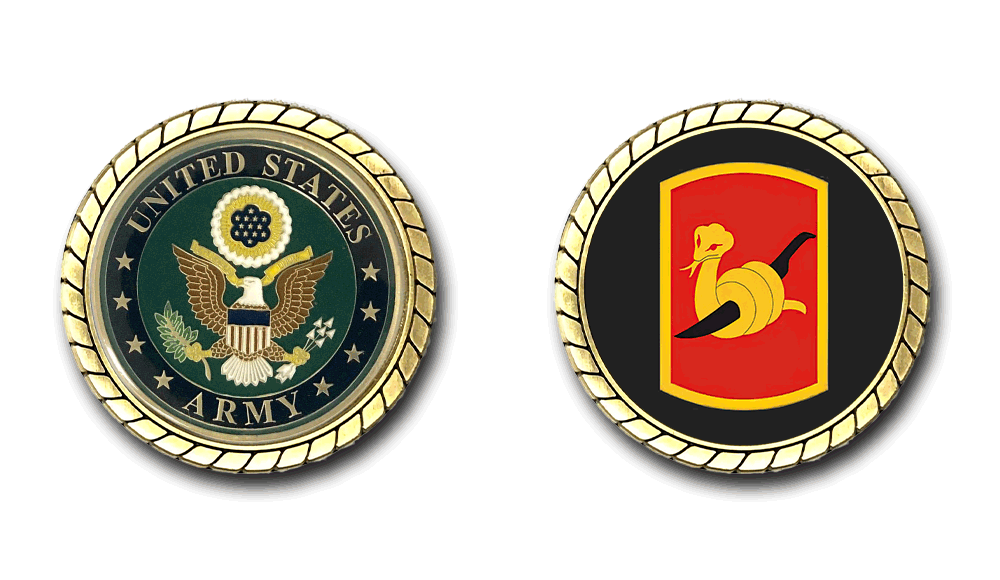 Please enjoy this U.S. Army Officially Licensed Challenge Coin. This coin is approximately 1.75 inches in size, is a 2 sided coin and is of the highest quality.