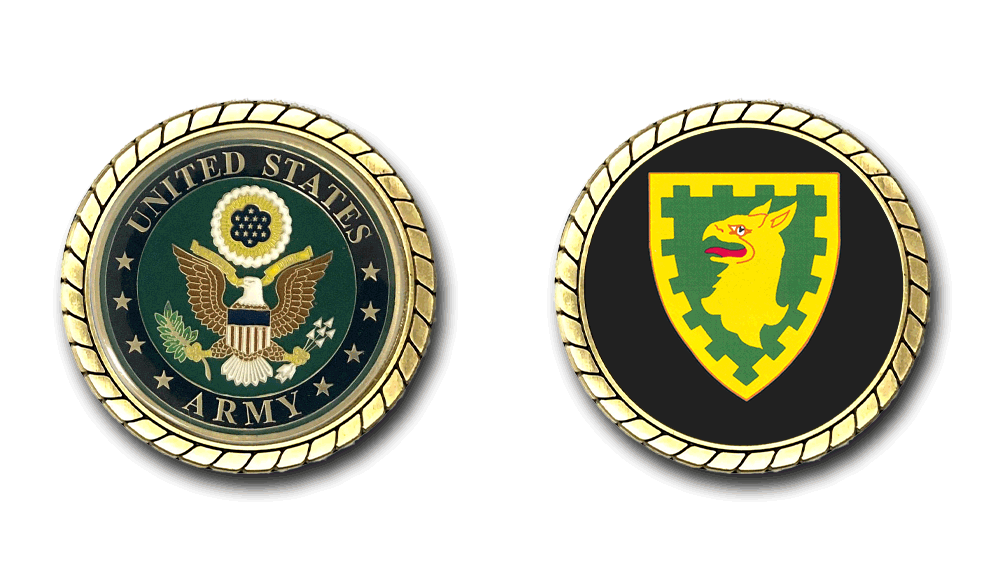 Please enjoy this U.S. Army Officially Licensed Challenge Coin. This coin is approximately 1.75 inches in size, is a 2 sided coin and is of the highest quality.