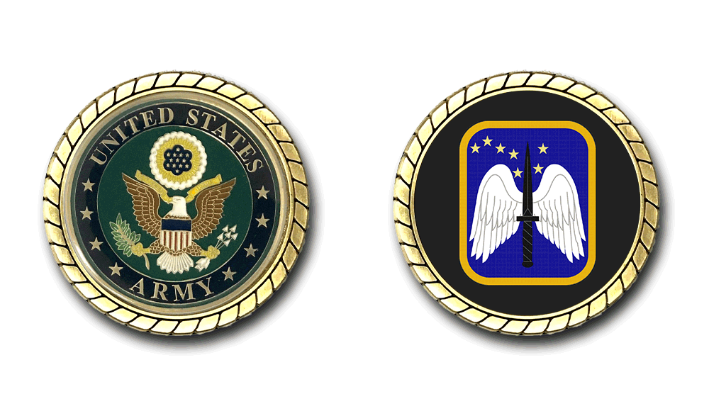 Please enjoy this U.S. Army Officially Licensed Challenge Coin. This coin is approximately 1.75 inches in size, is a 2 sided coin and is of the highest quality.