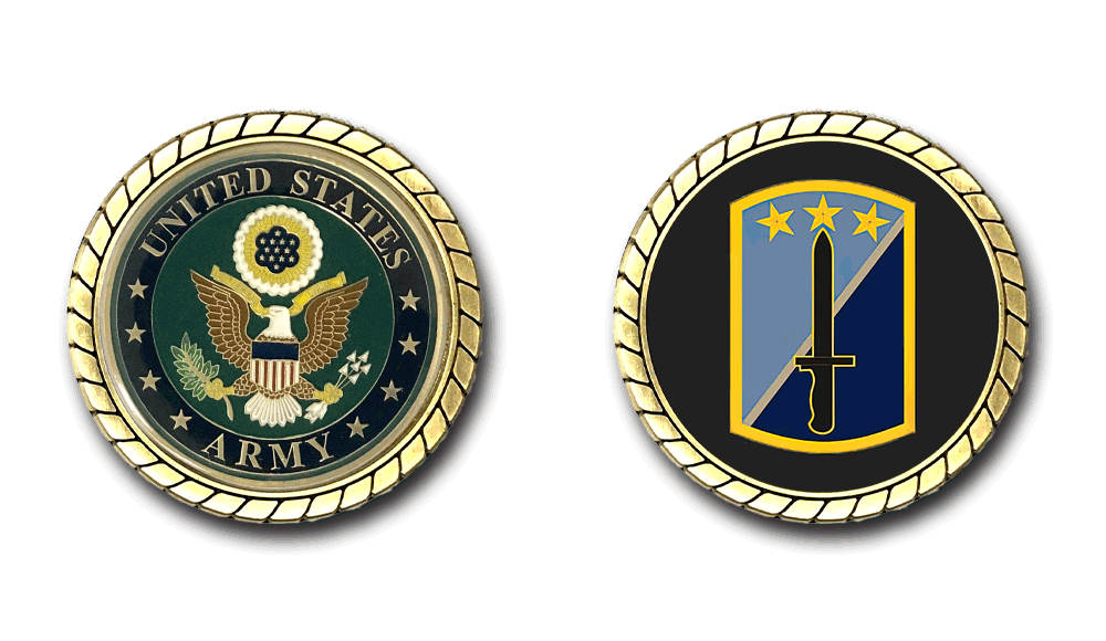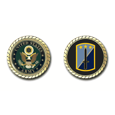 Please enjoy this U.S. Army Officially Licensed Challenge Coin. This coin is approximately 1.75 inches in size, is a 2 sided coin and is of the highest quality.