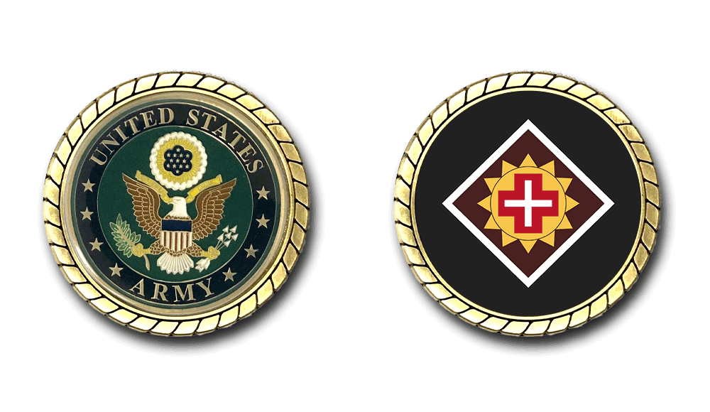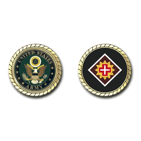 Please enjoy this U.S. Army Officially Licensed Challenge Coin. This coin is approximately 1.75 inches in size, is a 2 sided coin and is of the highest quality.