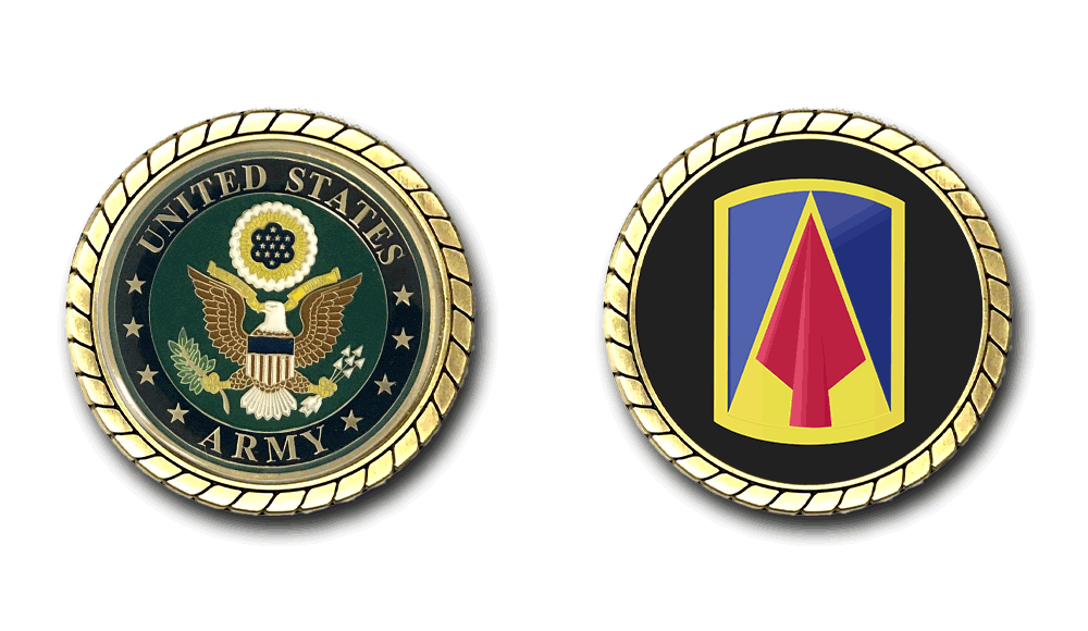 Please enjoy this U.S. Army Officially Licensed Challenge Coin. This coin is approximately 1.75 inches in size, is a 2 sided coin and is of the highest quality.