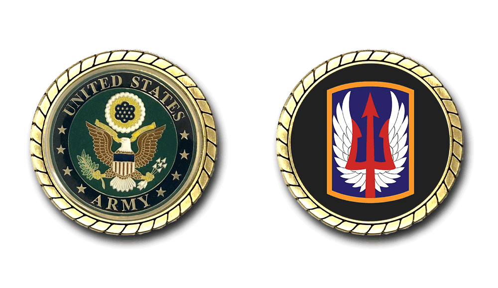 Please enjoy this U.S. Army Officially Licensed Challenge Coin. This coin is approximately 1.75 inches in size, is a 2 sided coin and is of the highest quality.