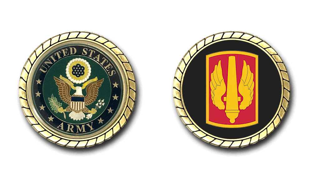 Please enjoy this U.S. Army Officially Licensed Challenge Coin. This coin is approximately 1.75 inches in size, is a 2 sided coin and is of the highest quality.