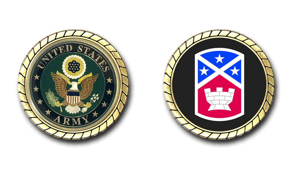 Please enjoy this U.S. Army Officially Licensed Challenge Coin. This coin is approximately 1.75 inches in size, is a 2 sided coin and is of the highest quality.