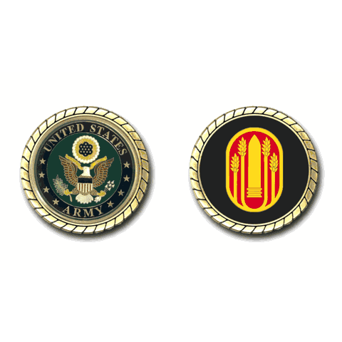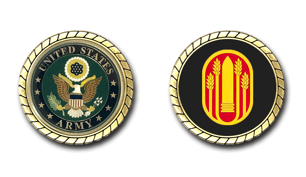 Please enjoy this U.S. Army Officially Licensed Challenge Coin. This coin is approximately 1.75 inches in size, is a 2 sided coin and is of the highest quality.
