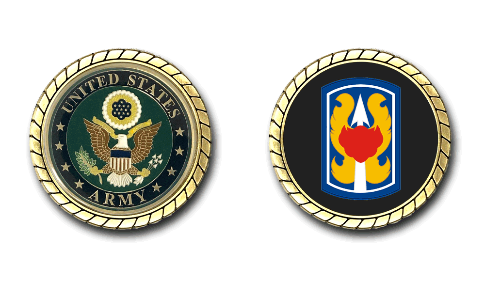 Please enjoy this U.S. Army Officially Licensed Challenge Coin. This coin is approximately 1.75 inches in size, is a 2 sided coin and is of the highest quality.