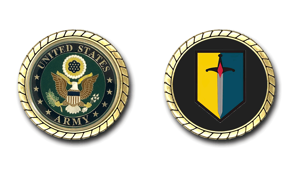 Please enjoy this U.S. Army Officially Licensed Challenge Coin. This coin is approximately 1.75 inches in size, is a 2 sided coin and is of the highest quality.