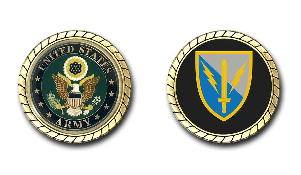 Please enjoy this U.S. Army Officially Licensed Challenge Coin. This coin is approximately 1.75 inches in size, is a 2 sided coin and is of the highest quality.