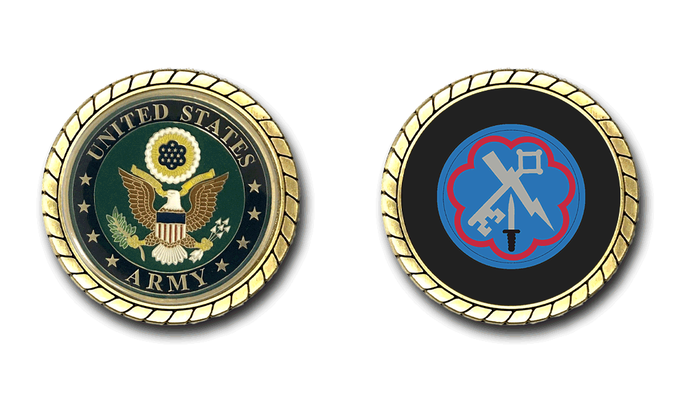 Please enjoy this U.S. Army Officially Licensed Challenge Coin. This coin is approximately 1.75 inches in size, is a 2 sided coin and is of the highest quality.