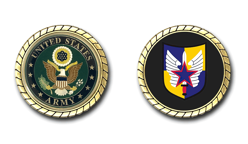 Please enjoy this U.S. Army Officially Licensed Challenge Coin. This coin is approximately 1.75 inches in size, is a 2 sided coin and is of the highest quality.