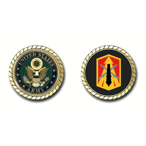 Please enjoy this U.S. Army Officially Licensed Challenge Coin. This coin is approximately 1.75 inches in size, is a 2 sided coin and is of the highest quality.