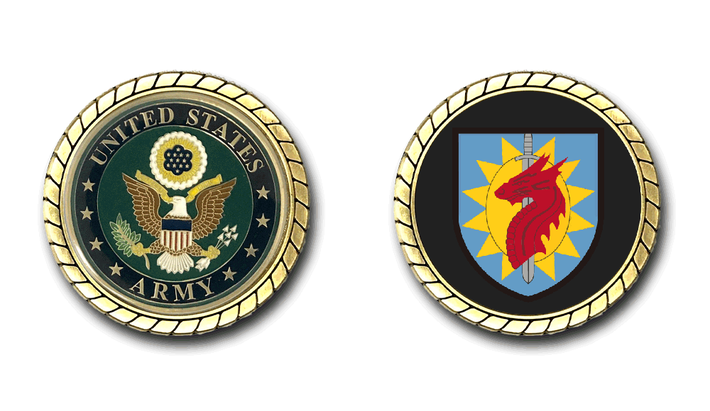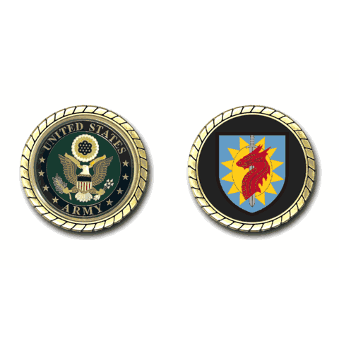 Please enjoy this U.S. Army Officially Licensed Challenge Coin. This coin is approximately 1.75 inches in size, is a 2 sided coin and is of the highest quality.