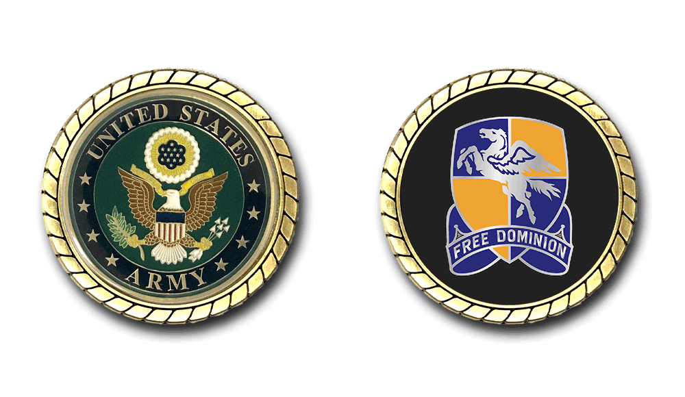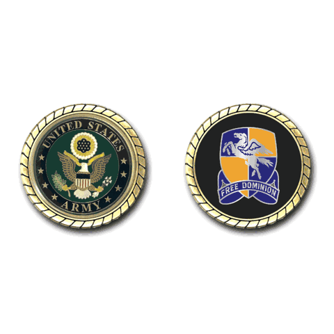 Please enjoy this U.S. Army Officially Licensed Challenge Coin. This coin is approximately 1.75 inches in size, is a 2 sided coin and is of the highest quality.
