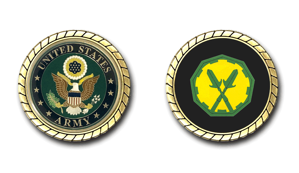 Please enjoy this U.S. Army Officially Licensed Challenge Coin. This coin is approximately 1.75 inches in size, is a 2 sided coin and is of the highest quality.