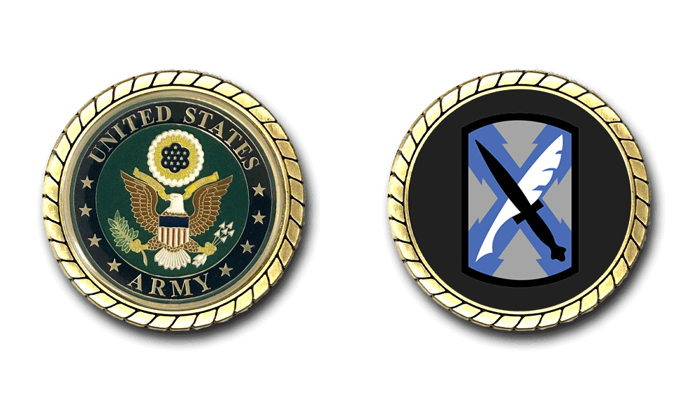 Please enjoy this U.S. Army Officially Licensed Challenge Coin. This coin is approximately 1.75 inches in size, is a 2 sided coin and is of the highest quality.