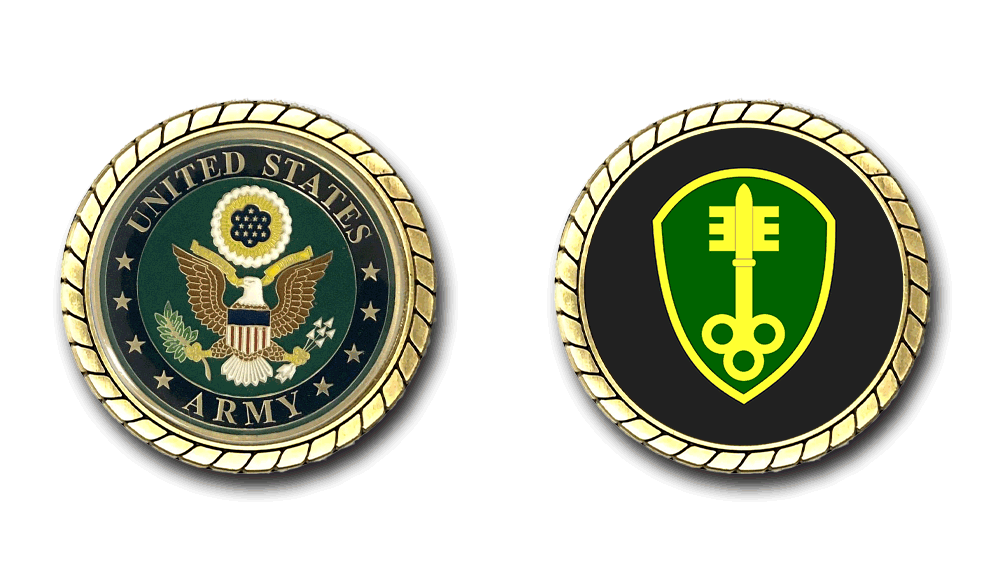 Please enjoy this U.S. Army Officially Licensed Challenge Coin. This coin is approximately 1.75 inches in size, is a 2 sided coin and is of the highest quality.