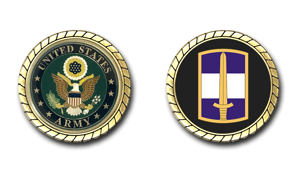 Please enjoy this U.S. Army Officially Licensed Challenge Coin. This coin is approximately 1.75 inches in size, is a 2 sided coin and is of the highest quality.