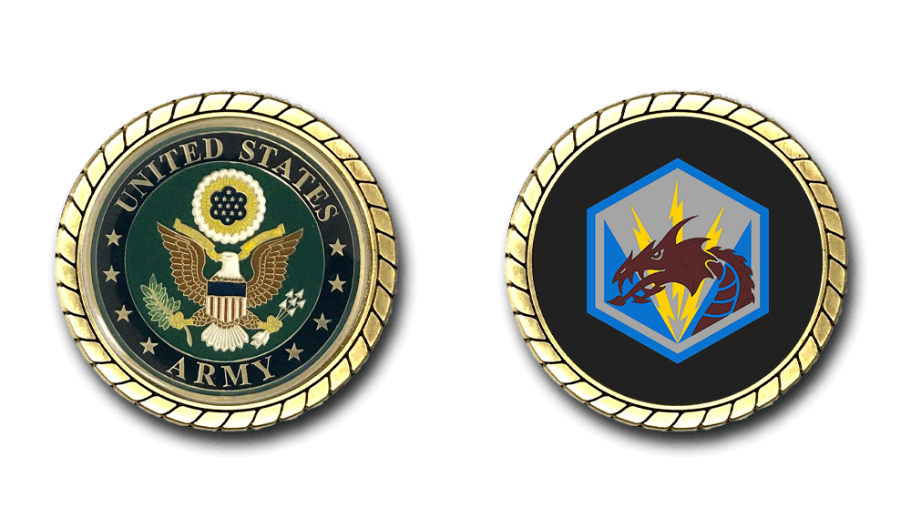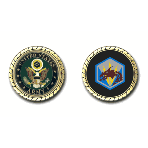 Please enjoy this U.S. Army Officially Licensed Challenge Coin. This coin is approximately 1.75 inches in size, is a 2 sided coin and is of the highest quality.