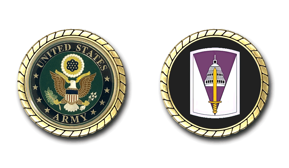 Please enjoy this U.S. Army Officially Licensed Challenge Coin. This coin is approximately 1.75 inches in size, is a 2 sided coin and is of the highest quality.