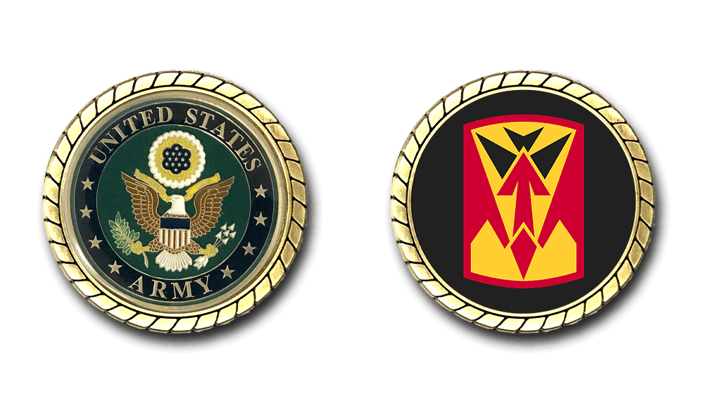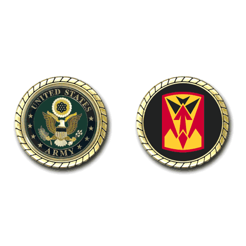 Please enjoy this U.S. Army Officially Licensed Challenge Coin. This coin is approximately 1.75 inches in size, is a 2 sided coin and is of the highest quality.