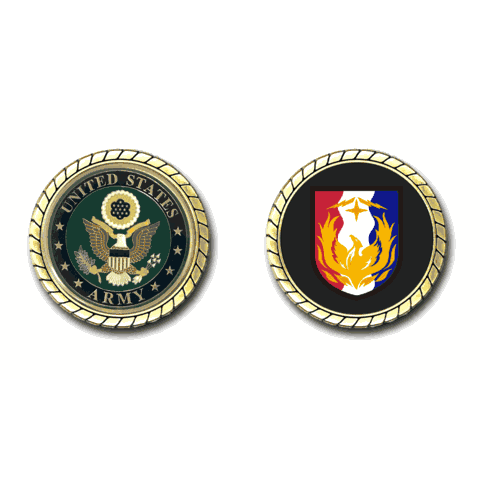 Please enjoy this U.S. Army Officially Licensed Challenge Coin. This coin is approximately 1.75 inches in size, is a 2 sided coin and is of the highest quality.