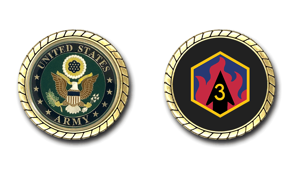 Please enjoy this U.S. Army Officially Licensed Challenge Coin. This coin is approximately 1.75 inches in size, is a 2 sided coin and is of the highest quality.