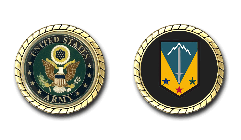 Please enjoy this U.S. Army Officially Licensed Challenge Coin. This coin is approximately 1.75 inches in size, is a 2 sided coin and is of the highest quality.