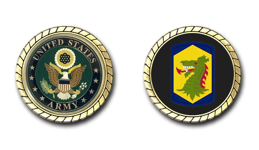 Please enjoy this U.S. Army Officially Licensed Challenge Coin. This coin is approximately 1.75 inches in size, is a 2 sided coin and is of the highest quality.