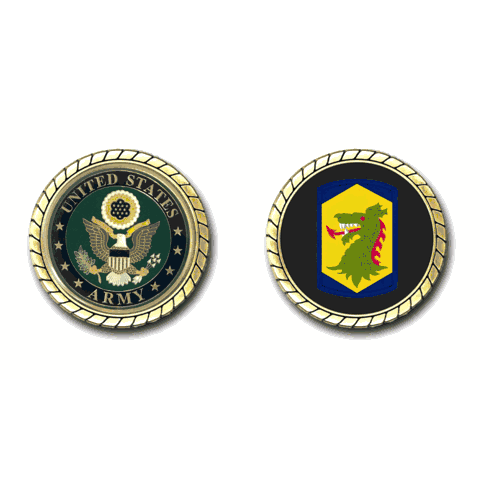 Please enjoy this U.S. Army Officially Licensed Challenge Coin. This coin is approximately 1.75 inches in size, is a 2 sided coin and is of the highest quality.