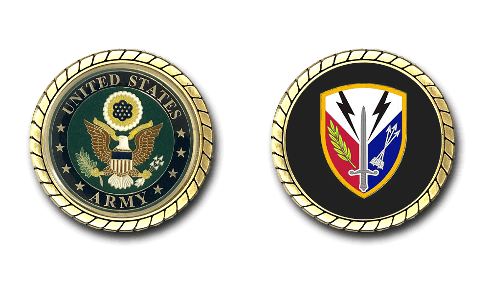 Please enjoy this U.S. Army Officially Licensed Challenge Coin. This coin is approximately 1.75 inches in size, is a 2 sided coin and is of the highest quality.