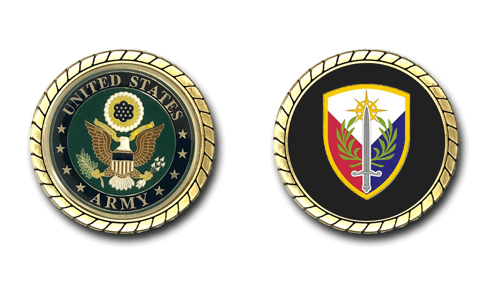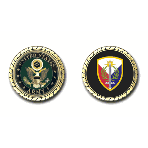 Please enjoy this U.S. Army Officially Licensed Challenge Coin. This coin is approximately 1.75 inches in size, is a 2 sided coin and is of the highest quality.