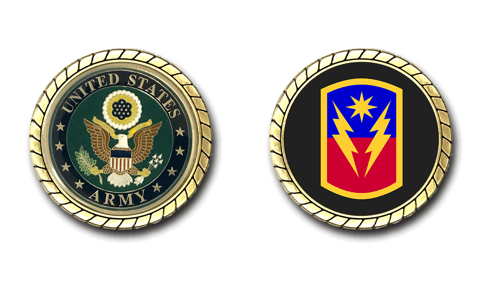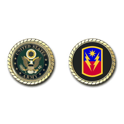 Please enjoy this U.S. Army Officially Licensed Challenge Coin. This coin is approximately 1.75 inches in size, is a 2 sided coin and is of the highest quality.