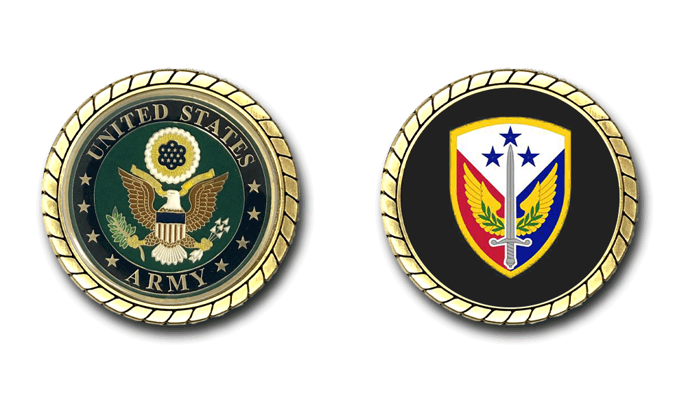 Please enjoy this U.S. Army Officially Licensed Challenge Coin. This coin is approximately 1.75 inches in size, is a 2 sided coin and is of the highest quality.