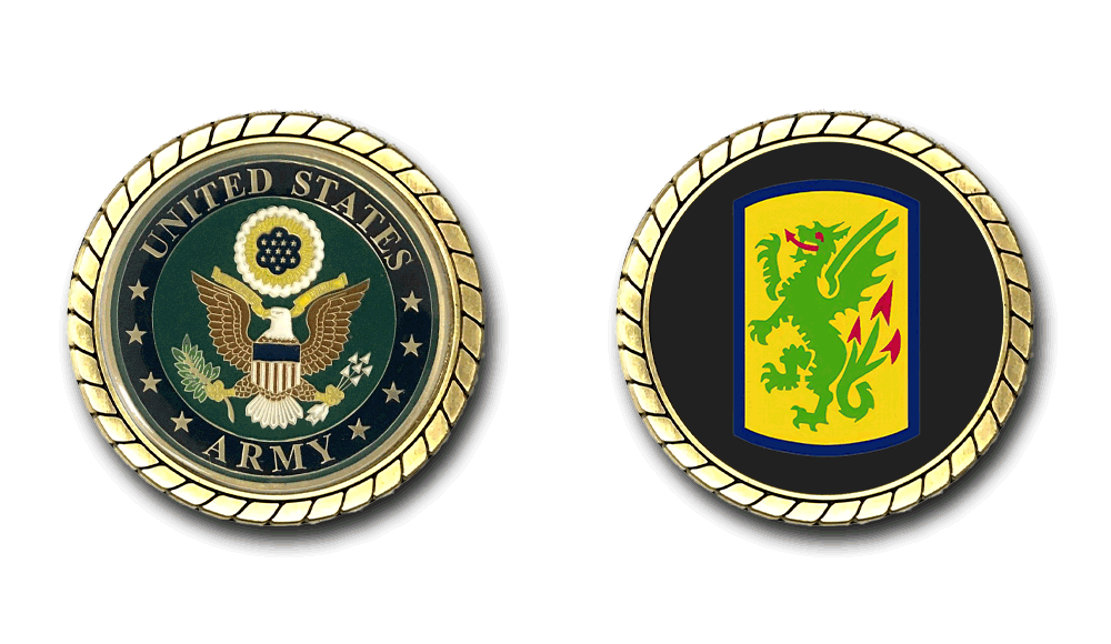 Please enjoy this U.S. Army Officially Licensed Challenge Coin. This coin is approximately 1.75 inches in size, is a 2 sided coin and is of the highest quality.