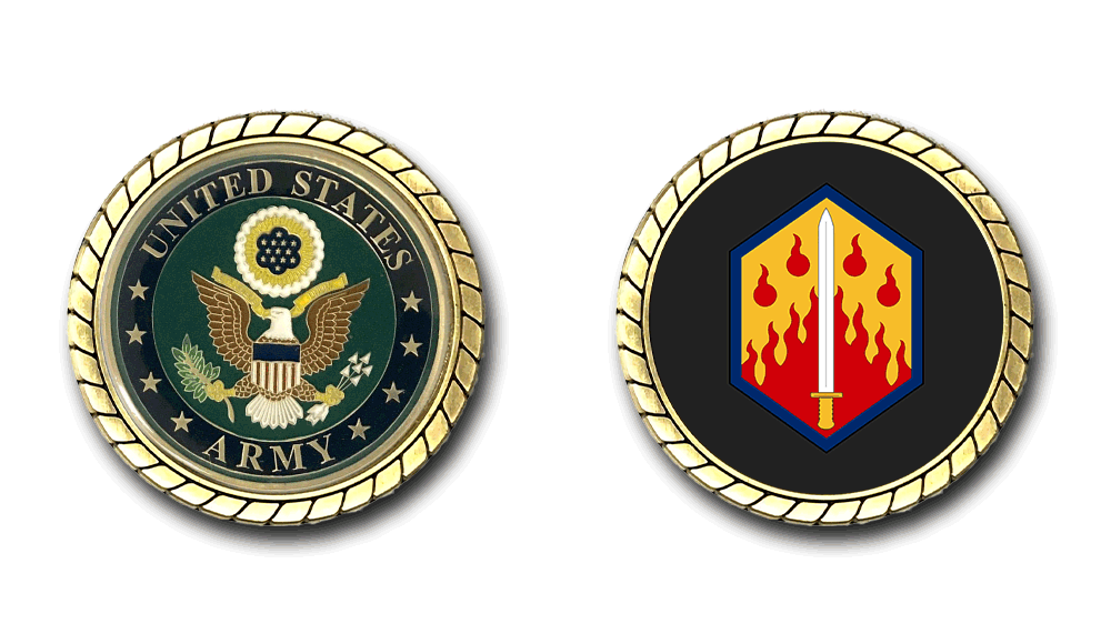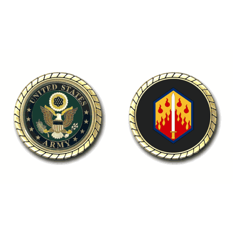 Please enjoy this U.S. Army Officially Licensed Challenge Coin. This coin is approximately 1.75 inches in size, is a 2 sided coin and is of the highest quality.