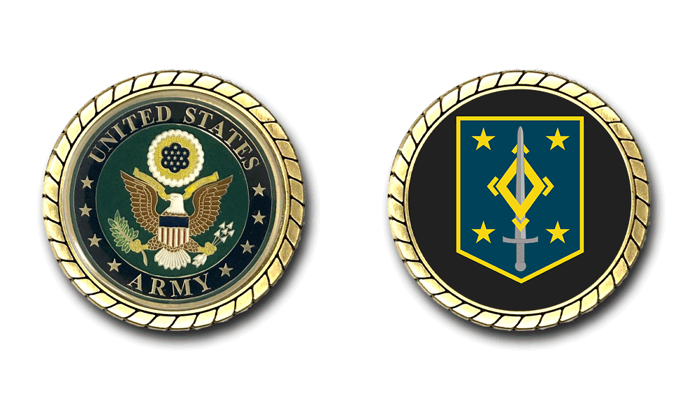 Please enjoy this U.S. Army Officially Licensed Challenge Coin. This coin is approximately 1.75 inches in size, is a 2 sided coin and is of the highest quality.