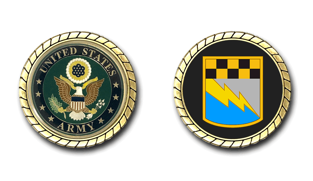 Please enjoy this U.S. Army Officially Licensed Challenge Coin. This coin is approximately 1.75 inches in size, is a 2 sided coin and is of the highest quality.