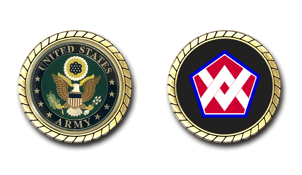Please enjoy this U.S. Army Officially Licensed Challenge Coin. This coin is approximately 1.75 inches in size, is a 2 sided coin and is of the highest quality.