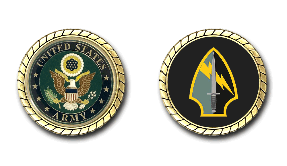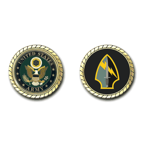 Please enjoy this U.S. Army Officially Licensed Challenge Coin. This coin is approximately 1.75 inches in size, is a 2 sided coin and is of the highest quality.
