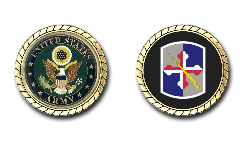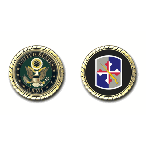 Please enjoy this U.S. Army Officially Licensed Challenge Coin. This coin is approximately 1.75 inches in size, is a 2 sided coin and is of the highest quality.