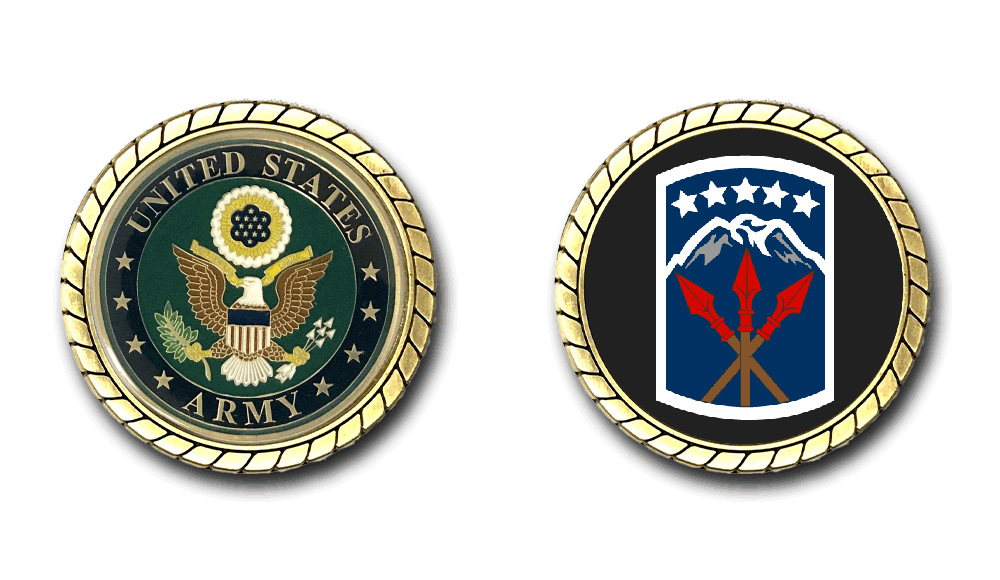 Please enjoy this U.S. Army Officially Licensed Challenge Coin. This coin is approximately 1.75 inches in size, is a 2 sided coin and is of the highest quality.