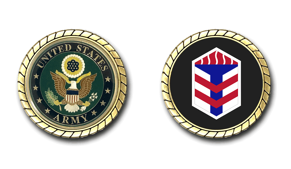 Please enjoy this U.S. Army Officially Licensed Challenge Coin. This coin is approximately 1.75 inches in size, is a 2 sided coin and is of the highest quality.