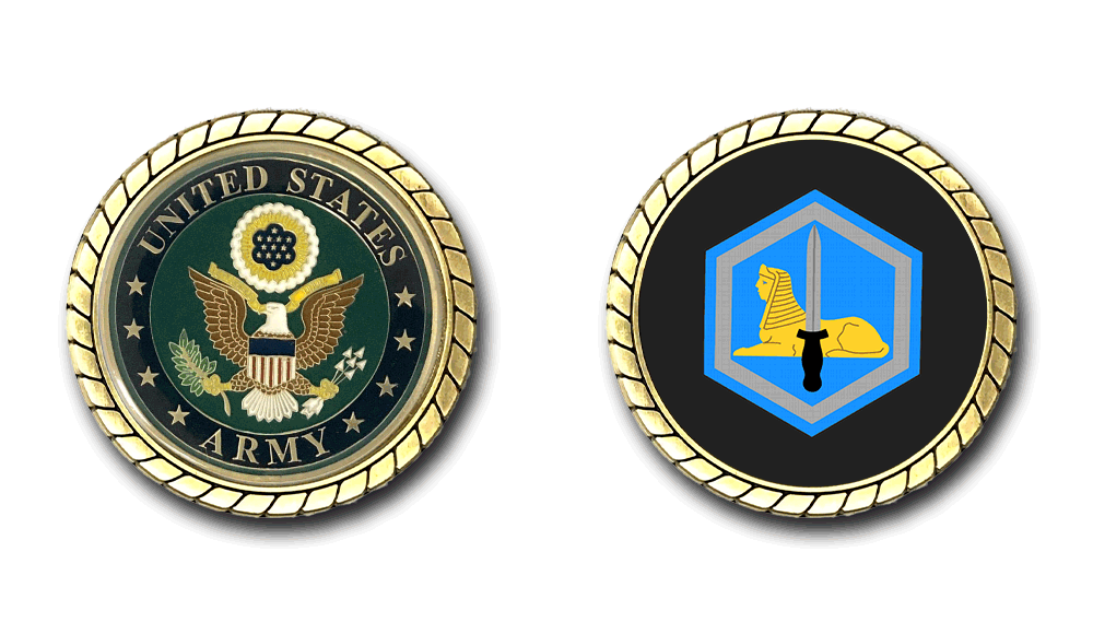 Please enjoy this U.S. Army Officially Licensed Challenge Coin. This coin is approximately 1.75 inches in size, is a 2 sided coin and is of the highest quality.